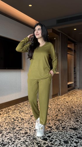 Kadın yeni sezon uzun kollu ribana detay ikili takım
