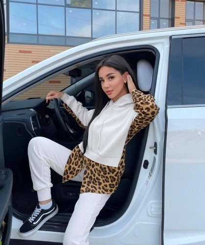 Kadın leopar ve gömlek detay sweat ve pantolon kili takım