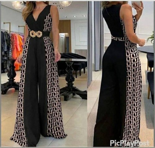 • Kadın göğüs dekolteli toka detay dijital baskılı tulum