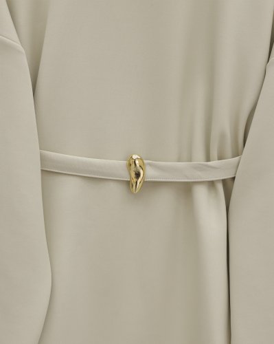 • Yuvarlak Yaka Beli Kemerli Scuba Takım Bej