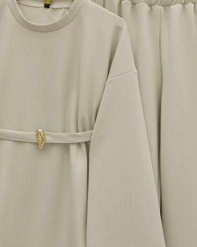Yuvarlak Yaka Beli Kemerli Scuba Takım Bej