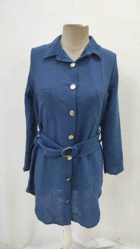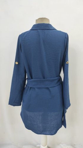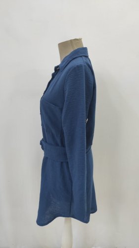 • Kadın uzun kollu yakalı önden düğmeli beli kuşaklı mini ithal keten elbise