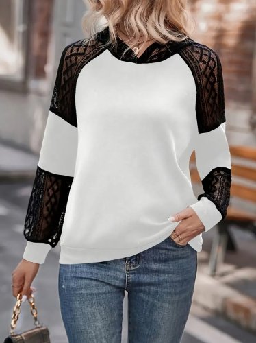 • Kadın uzun kollu dantelli kapşonlu viskon iki iplik bluz