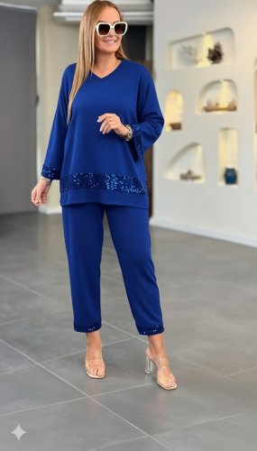 Kadın uzun kollu v yakalı pulpayet viskon iki iplik bluz ve pantolon takım