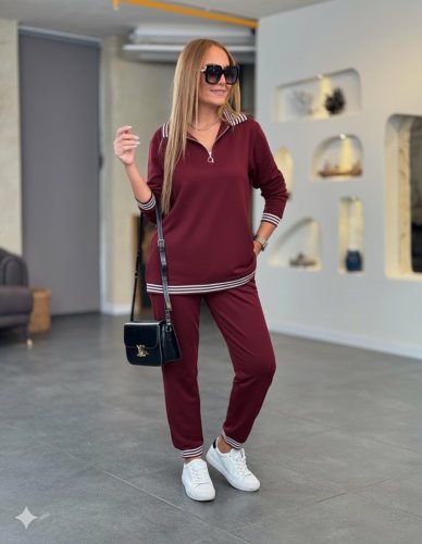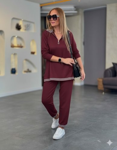 • Kadın uzun kollu fermuarlı şerit detay desenli alt üst ikili viskon iki iplik takım