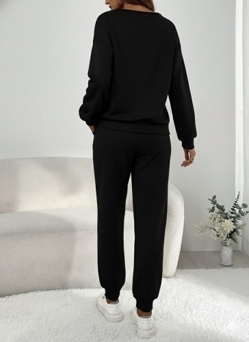 Kadın uzun kollu v yakalı pulpayetli viskon iki iplik bluz ve pantolon