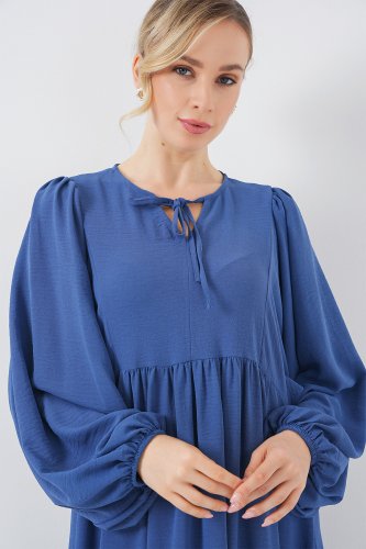Balon Kol Uzun Tesettür Elbise 2464 Saks