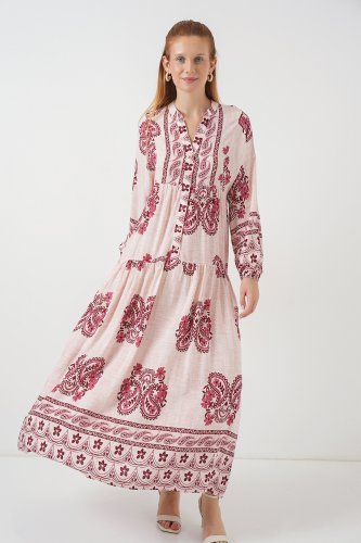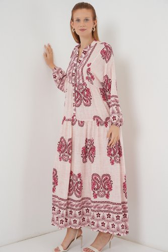 Desenli Uzun Tesettür Elbise 2585 BKırmızı