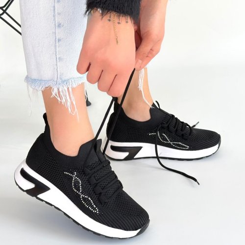 Belan Siyah Triko Bağcıklı Spor Ayakkabı