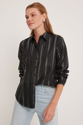 • Siyah Çizgili Varak Desenli Gömlek 20253