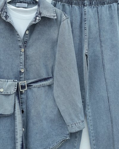 • Çanta Cepli Çimalı Pantolonlu Kot Takım Mavi