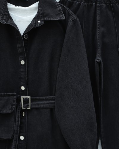 • Çanta Cepli Çimalı Pantolonlu Kot Takım Siyah