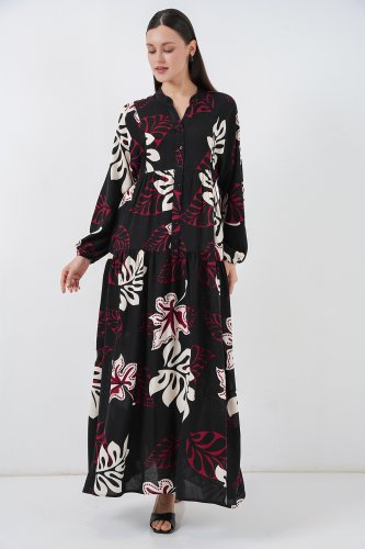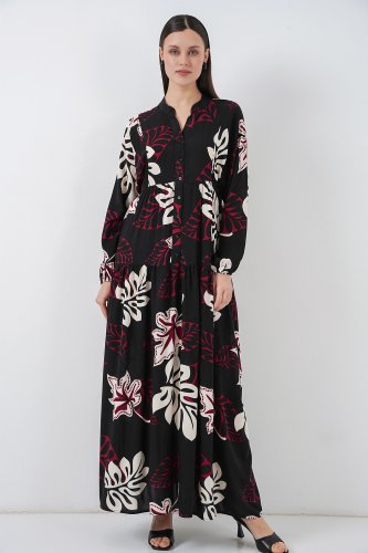 • Desenli Uzun Tesettür Elbise 2585 ZSiyah