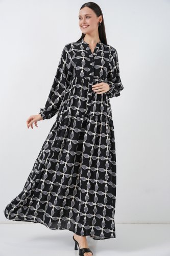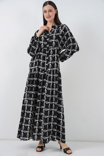 • Desenli Uzun Tesettür Elbise 2585 Siyah1