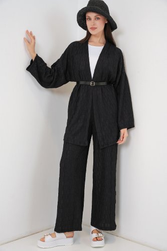• Kimono Pantolon İkili Takım 30078 Siyah