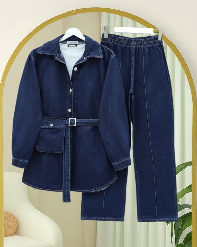 Dantel Detaylı Bağlamalı Kolu Lastikli Kraş Etekli Takım Bebe Mavi