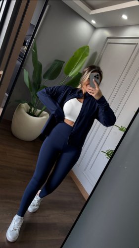 Kadın full likralı ceket ve yüksek bel tayt ikili takim